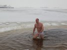 Пенсіонер Олександр Смірнов занурюється у крижану воду не тільки на Водохреща.