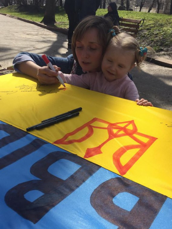 Організаторка акції збирає підписи мешканців України на прапорах протягом останніх 2-х років, - пише "Твоє місто".