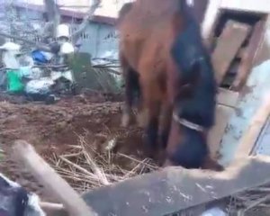 Двір, в якому утримували коня був завалений сміттям. Тварина стояла у власних відходах без води та корму.