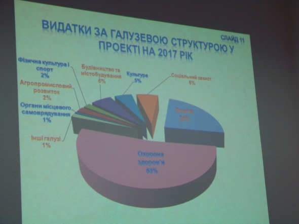 "По галузях видаткова частина обласного бюджету має такий вигляд: на охорону здоров'я - 53%, освіту - 24%, соціальний захист і будівництво - по 6%, культуру - 5%, решта - на фізкультуру, АПК і органи місцевого самоврядування. Додатково на медицину розраховуємо залучити 234 млн грн на Обласну лікарню імені Пирогова із державного бюджету. Установа буде відзначати 100 років і до цієї дати потрібно завершити розпочаті будівельні і ремонтні роботи. Наш бюджет цю суму не потягне", - розповів директор департамент фінансів облдержадміністрації Микола Копачевський.