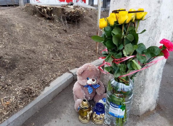 До місця трагедії вчителі, батьки однокласників принесли дитячі іграшки та жовті троянди. В школі поставили фото дівчинки з чорною стрічкою та квіти.