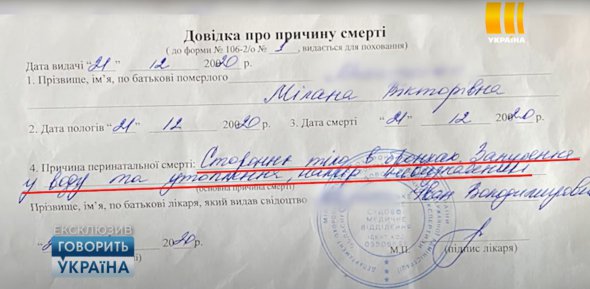 Перевірку проводять за статтею, що передбачає умисне вбивство новонародженої дитини під час пологів або одразу після них.