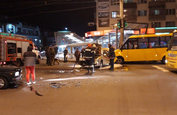 Потрійне ДТП з пожежею сталося в центрі Полтави 31 жовтня. На перехресті вулиць Шевченка та Європейської в годину пік зіткнулися 2 легковика та автобус. На диво, в аварії ніхто не постраждав.