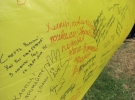Усі гості свята зробили колективне фото на фоні десятиметрового стягу, а також залишили на ньому свої підписи та побажання бійцям. Після чого передали його гостям із міста Конотоп на Сумщині - капелану Степану та волонтерці Оксані Динник. У своєму місті вони розгорнуть прапор на річницю Конотопської битви.