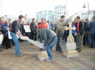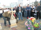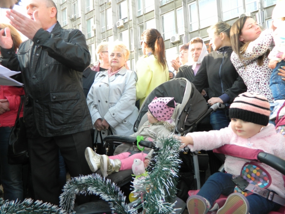 О 8.15 годині ранку перед входом до міськради підносять штучні квіти, надгробні вінки та кошики. Двоє чоловіків встановлюють два надмогильні хрести. Жінки і діти розгортають яскраві плакати із надписами "Ми не хочемо жити на кладовищі!", "Ні похоронному бізнесу під моїми вікнами", "Яка влада, такі й плани".