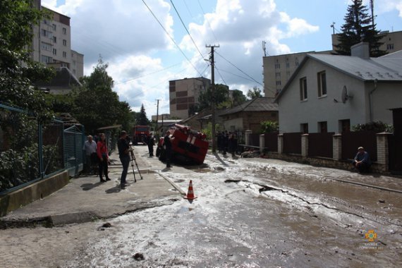 Подія трапилась 16 липня: пожежна автоцистерна прямувала на вул. Стадникої в Тернополі, для відкачування води через загрозу підтоплення. Автівка правим боком провалилась у тріщину на проїжджій частині, - повідомляє Файне Місто.