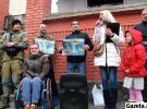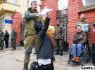 "Сьогодні на колінах стоїть актор у масці Путіна але, повірте, пройде час і ми поставимо на коліна головного окупанта нашої країни – Володимира Путіна. До цього моменту залишилося не так вже й багато, - наголосив учасників акції, боєць АТО Роман Святошенко.