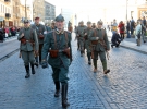 У сквері навпроти облдержадміністрації облаштували боївки УПА, польові позиції січових стрільців. На лавці сидить сліпий і грає на кобзі, речитативом співає баладу.