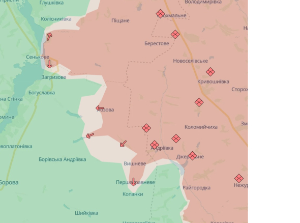 Росіяни намагаються просунутися у Нову Кругляківку на лівому березі річки Оскіл, повідомили аналітики української OSINT-спільноти DeepState.