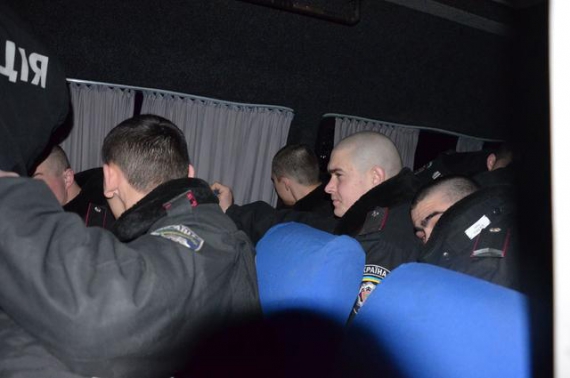 Розлючений натовп розгромив транспорт силовиків, а пізніше зупинив автобус з "тітушкамі" і спалив його.