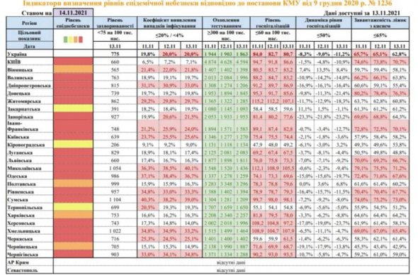 "Станом на 14 листопада у помаранчевій зоні - Вінницька, Полтавська, Харківська та Чернівецька області", - йдеться у повідомленні.