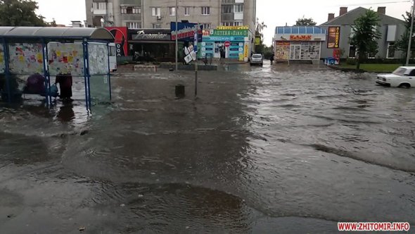 Вода заливала магазини та літні тераси, повідомляють "Новини Житомирщини"
