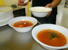 "Борщ смачний, а вчора був ще смачніший суп з шматками рибки. Ми з дівчатами дуже його любимо", - з'їдає до кінця першу страву Мілана Дуднік.