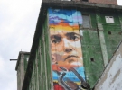 Мурал прикрашає стіну на одній із самих високих будівель майже у центрі міста.