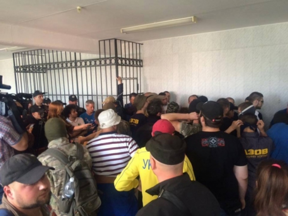Як повідомляє "Громадське", на даний момент в суді забарикадувалися близько 50 представників проукраїнських організацій. Це сталося одразу після того, як судді вирішили звільнили його з-під варти.