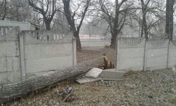 Буревій, який вирував Вінниччиною протягом двох днів, наробив біди і в зоопарку. Тополя впала на паркан, який відгороджував київське шосе від зоопарку.