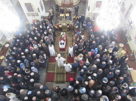 Біля вівтаря стоїть труна, завалена червоними та жовтими трояндами. На Артему синій костюм. Запах ладану б'є до скреготу у горлі. На лавках сидять пенсіонери, втирають сльози. Архієпископ Полтавський і Кременчуцький Федір починає церемонію прощання. Люди запалюють свічки. Протягом години молитов до церкви підходять ті, хто запізнився.