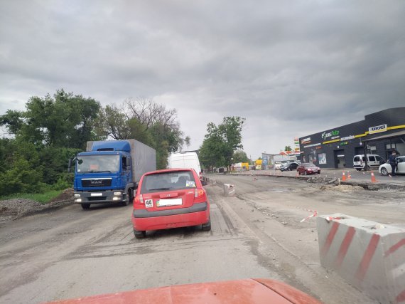 А поки що страждають автомобілісти. Рух на цій ділянці ускладнений, автомобілі долають глибокі ями. Багато водіїв об'їжджають міськими вулицями.