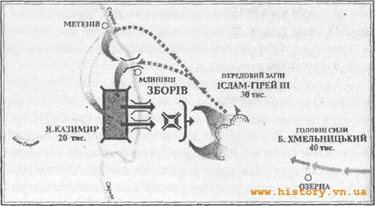 Між українським козацьким і польським військами біля міста Зборова тепер Тернопільської області 15—16 серпня 1649 відбулася битва. У ній зіткнулися загони Богдана Хмельницького і польського короля Яна II Казимира. Останні намагалися зняти козацьку облогу Збаразької фортеці. У фортеці після поразки замкнулися залишки війська Яреми Вишневецького.