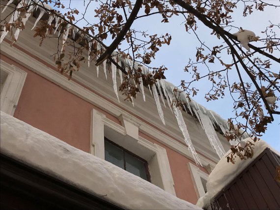 В центрі Полтави з дахів будинків звисають метрові бурульки. Через нерозчищені тротуари немає можливості обійти небезпечні ділянки.