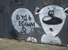 Поруч написано "Львовский мохито, Умка 2013". Малюнок розташований неподалік від місця, де в роки другої світової війни перебував концтабір. Крім цього художник у центрі міста намалював відомого ведмедика з мультфільму, який викрикує "Слава Україні!".