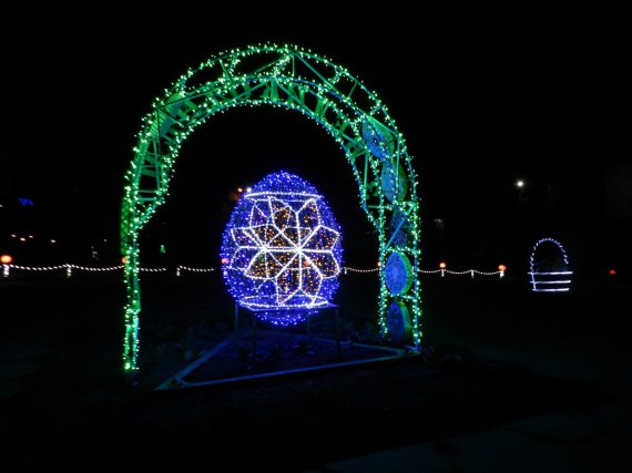 Два великодні дерева можна побачити в центрі Нових Санжарів на Народній площі. Вони доповнюють святкові ілюмінаційні інсталяції, встановлені напередодні Пасхи.
