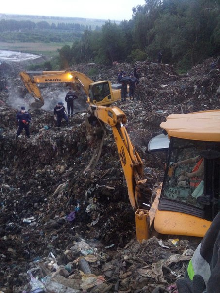 31 травня з сьомої ранку на Грибовицькому сміттєзвалищі відновили пошуки трьох зниклих рятувальників. Вночі шукати чоловіків завадив дощ. Була загроза нових зсувів.