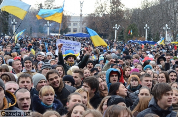 Сьогодні на Євромайдані зібралося понад 2 тис молодих людей. Мер міста закликав долучатися до молоді і викладачів.