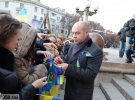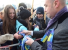 Стрічки із євросимволікою роздавав сьогодні студентам на Театральному майдані у Тернополі міський голова Сергій Надал.