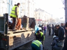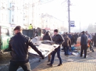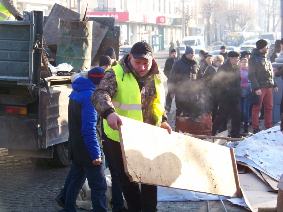 Намети і плакати почали закидати на вантажівки. Між прихильниками і противниками протесту велись активні суперечки.