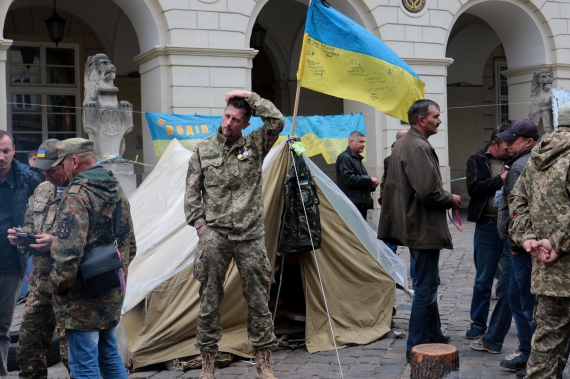 29 вересня бійці АТО заблокували роботу сесії Львівської міськради. Два тижні живуть у наметах під стінами Львівської ратуші. Вимагають виділення земельних ділянок, передбачених законом. Не допускають затвердження проекту ухвали "Про захист інтересів учасників АТО, вихідців зі Львова".