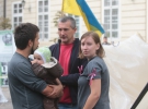 "Два роки боремося, щоб нашим хлопцям виділили ту землю. Тільки Львів з усієї України ще цього не зробив. 14 липня на сесії вийшли і попросили міську владу, щоб виділила земельну ділянку. Пообіцяли, якщо не вирішать це, то у вересні будемо блокувати їхню роботу. 5 вересня поставили намети і дали їм два тижні. Учора півшостої вечора нам винесли ухвалу про передання 48 га землі біля Зимної Води в комунальну власність міста. Документ ні про що, аби ми тільки пішли звідси. Не вказано, коли ту землю виділять учасникам АТО. Ухвалили продовження будівництва будинка для учасників АТО на вул. Під Голоском, 35, але його і не припиняли", – розповідає голова обласної спілки соціального захисту бійців АТО та сімей загиблих Богдана Сірків.