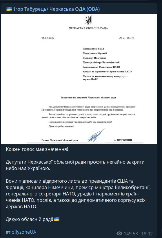 Звернення підписують і депутати, повідомляють голови ОДА у Telegram-каналах.