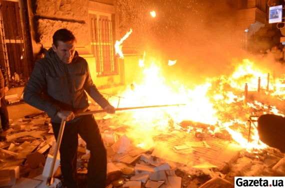 У той час як у столиці на Майдані розпочалися перші розстріли активістів, увечері 18 лютого натовп радикально настроєних молодих людей захопив приміщення Львівської ОДА. Після цього протестувальники вирушили до Головного управління МВС у Львівській області. Радикали розбили вікна, виламали двері та увірвалися всередину, де почали трощити все, що попадало під гаряч руку. Для працівників міліції, які покидали приміщення, влаштували коридор ганьби.