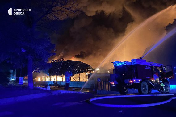 В Одесі внаслідок нічної атаки РФ загорівся один із гіпермаркетів міста.