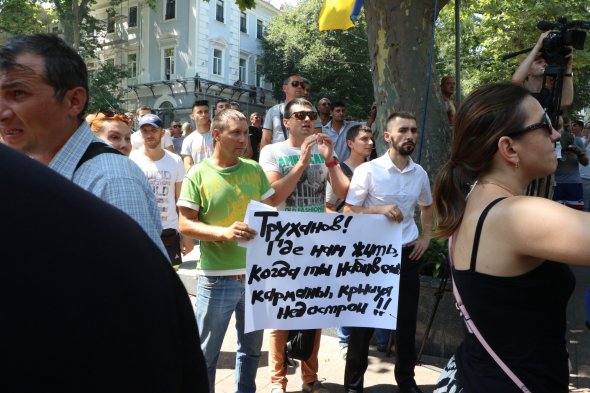 "Більше тисячі містян прийшли сьогодні, 4 серпня, під стіни обласної прокуратури, так як стомилися від того, що будь-які питання в місті вирішуються методами "в стилі 90-х". Ці методи до цих пір живі, так як, на думку одеситів, у влади в місті знаходяться бандити. Доказом цього городяни називають низку пожеж в ресторанах і клубах на узбережжі, на яку поклав око поки ще мер Одеси Труханів. У зв'язку з цим погіршується інвестиційний клімат в Одесі та регіоні, так як бізнес вести просто неможливо без сплати "відкатів" і всіляких мит", - сказано в повідомленні.
