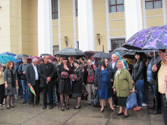 За 20 хвилин у приміщенні немає де стати, тому що постійно підходять люди. Розпорядники похорону виносять оберемки живих квітів. Ніхто із присутніх не стримує сліз - плачуть і жінки, і чоловіки.