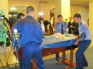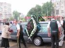 Близько десятої ранку під'їжджає траурна процесія. Із катафалку виносять труну накриту державним стягом. Колеги несуть портрет загиблого та його нагороди. Матір, дружину та сестру підводять під руки знайомі. Прощання проходить у фойє. Протягом цього часу біля труни стоять військові із почесної варти.