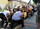 У цей час до приміщення прокуратури евакуатор підвозить спалений ущент автомобіль автомайданівки Таїси Гайди. Чоловіки вивантажують авто, ставлять на тротуарі.