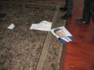 Міліція відступила, аби уникнути конфлікту. Проте двоє активістів були затримані за бійку та поранення правоохоронця. Після того активісти пішли кабінетами адміністрації. Де було відчинено - зривали прапори, герб, та портрет Президента Порошенка. По його фото топталися ногами. В кабінет голови обласної адміністрації Анатолія Олійника внесли сміттєвий бак. Для чого - не пояснили.