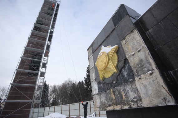 У Львові розпочали роботи зі знесення 30-метрової аварійної стели радянського Монументу слави на вулиці Стрийській.