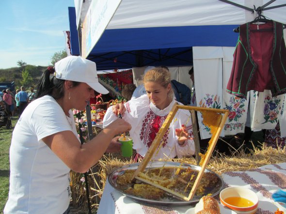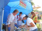 - Ви стільки наїдків понавозили – і качки, і голубці, і рибу, а сюди в чергу все одно прибігли, - сміється кремезний чоловік у солом'яному брилі.