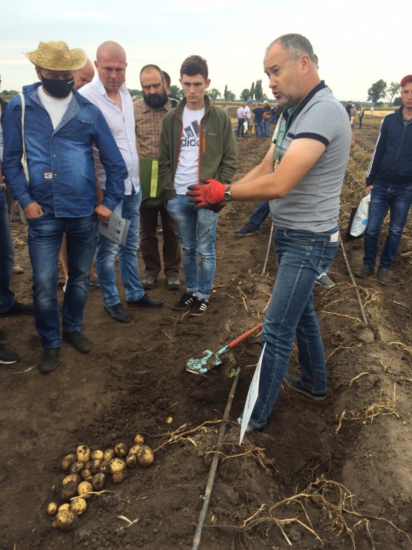 Директор українського відділення нідерландської компанії HZPC Ігор Чечітко демонструє новинку – сорт картоплі "Санред".