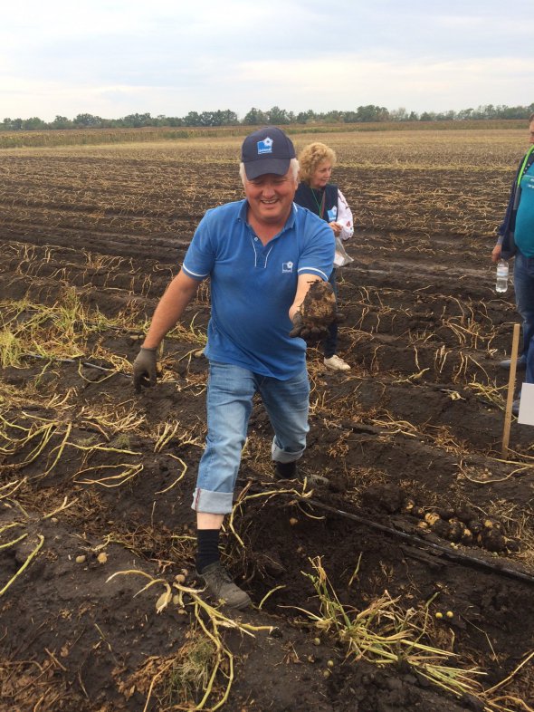Ігор Чечітко показує картоплю сорту "Бельмонда"
