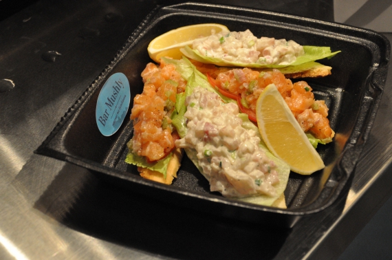 Чорноморські мушлі або мідії у вершках зі спеціями продають за 60 гривень. Порції вистачає на двох. Креветки - за 25 гривень. Ресторатори із сусіднього лотка пропонують спробувати крабів, рибу та середземноморських мушель за ціною від 69 гривень. Бургери чорного кольору із екстрактом каракатиці та крабовим м'ясом продають за 69 гривень. Закарпатські равлики особливо користуються попитом у туристів.
