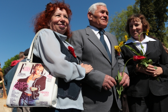 Попід руку з другом, до могил загиблих солдат, з букетом бузку йде 90-річний Ярослав Дуда. У чоловіка на грудях багато нагород.