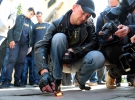 Не далеко могил захоронених солдатів радянської армії, ще о 9-тій, вишиковується з сотня правоохоронців, а також чоловіки у військовій формі з "Самооборони" та Нацгвардії. Через дорогу, на мотоциклах, з'їжджаються трохи більше десятка львівських байкерів.