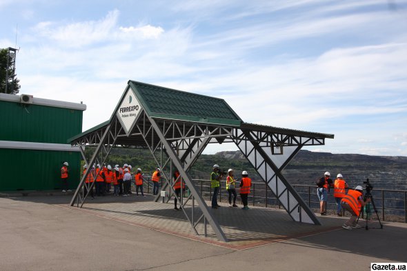 Оглядовий майданчик Єристівського комбінату нагадує альтанку, вибудувану напівколом. Під ногами шурхотить дрібне каміння. На краю — невисока металева огорожа. Працівники просять надто близько до неї не підходити.