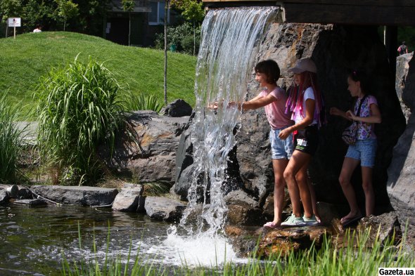 За спиною мера - великий сквер із лавами та фонтаном-водоспадом. Там фотографуються діти.