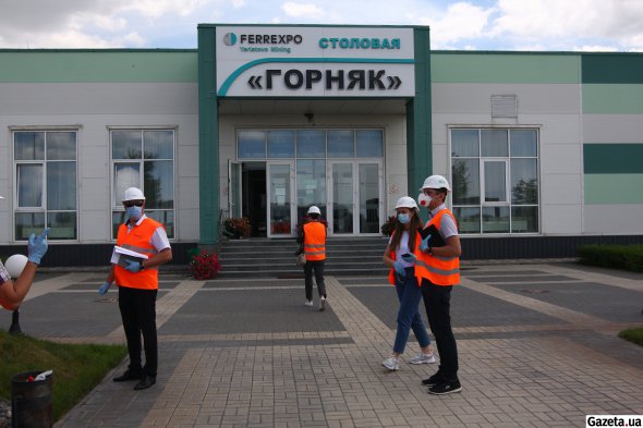 Перевірка закінчується за 3 хв. Чоловіки поправляють нагрудні рації та ствердно кивають колегам на вулиці: "Все добре". Шлагбаум піднімається. Бус повільно підкочується до сучасної зелено-сірої одноповерхової будівлі із двома новенькими альтанками поруч. Їдальня "Гірник" - перший пункт, куди потрапляють туристи. Там проінструктують з техніки безпеки, видадуть респіратори, каски з написом "Гість" та помаранчеві жилетки — обов'язкові атрибути для перебування на ГЗК. Призначать уповноваженого, який супроводжуватиме групу.